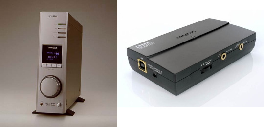 パソコンの設定が済んだあと、音質を決定する要素は、パソコンから音声のデジタル信号をアナログ信号に変換する「サウンドカード」あるいは「オーディオインターフェース」の性能とそのアナログ信号を増幅し再生するアンプ、スピーカ(ヘッドフォン)の性能によって決まります。
