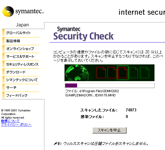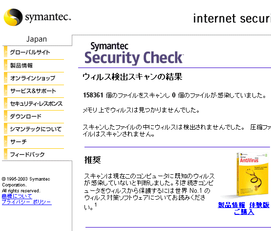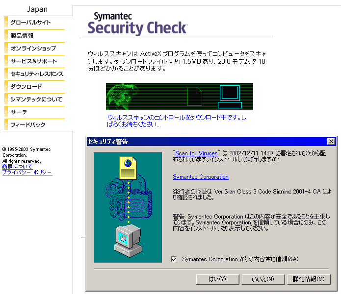 ウイルス駆除などのセキュリティソフトの開発・販売しているSymantec社のサイトに接続すれば