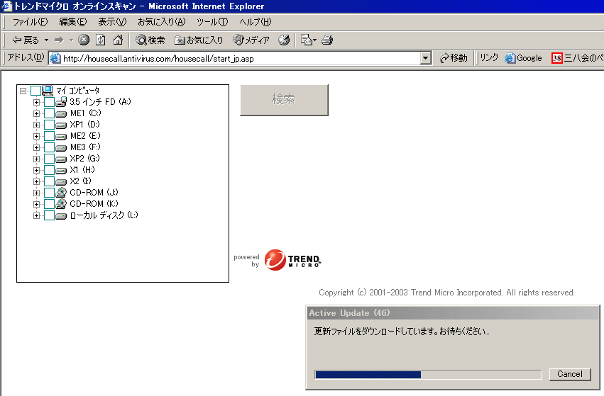 このサイトに接続すると次の画面が表れて、ウイルス検出に必要なファイルがダウンロードされる;