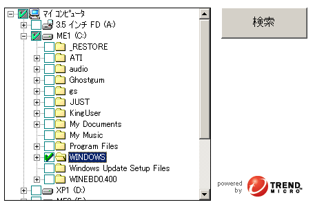 上の例ではメールなどから感染する可能性が大きいOSのシステムファイルWINDOWSのみを選んである。