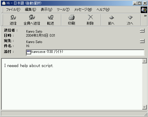 2.海外のメル友から英文でかつ添付ファイル付のメールが来ることがあるのですが?
