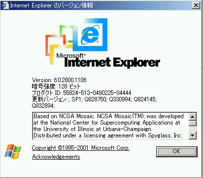 Outlook ExpressはInternet Explorerの付属ソフトなので、Internet Explorer6sp1がパソコンに