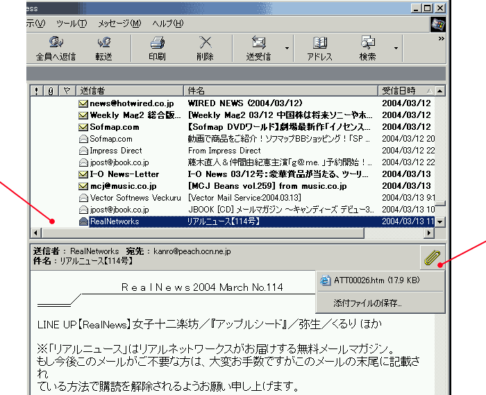 Outlook Expressのプレビューというのは、封を切らずに中味を表示してくれるので、とても便利な機能