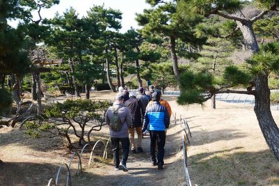 臨春閣をバックに記念写真を撮る。庭には1月22日に降った雪が残っており、四年ぶりの大雪とその後の