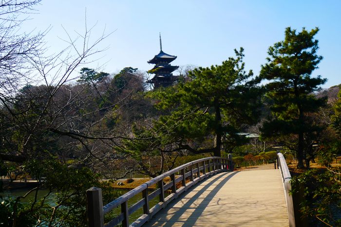三渓園の定番スポットの一つといわれている観心橋から三重塔を望む写真を撮っていると、後ろから