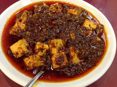 この店の名物料理、辛い辛い麻婆豆腐が出てきた。辛さを「標準より抑えめ」にしたのだが、それでもかなり