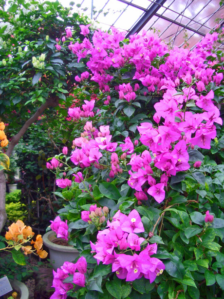 庭には季節外れで、今は少し萎んだバラ園のバラを横目に見ながら、南国ムードいっぱいのブーゲンビリア館に行った。