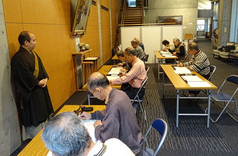 いよいよ写経が始まった。口を開くものもなく、いつもの三八会の雰囲気とは異なり、皆さん黙々と取り組む。