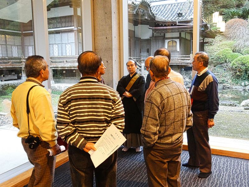 僧侶から寺の由来などを聞く