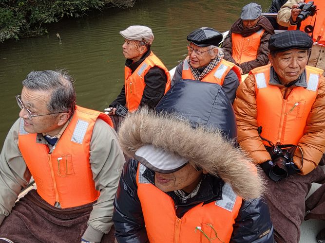 派手な柿色の救命胴衣と膝掛け毛布の御蔭で多少寒さも凌げるかと期待しボートに乗る。