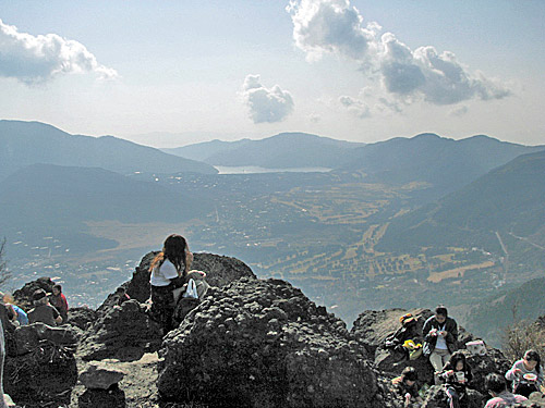 南側は火山岩で出来た絶壁になっているので近寄らなかった。眼下には仙石原ゴルフ場、ススキ野原、その奥に大涌谷や芦ノ湖等が一望できた。