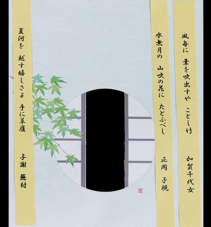 そして、料理の上の掛紙が素晴らしい。初夏を思わせる若葉のデザインにさりげなく名句が添えられている。