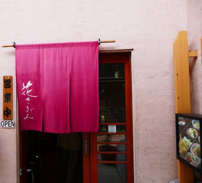 昼食場所として予約した料理茶屋「花さがみ」に向かう。駅を出て右側に折れ、駅前通りを5分ほど歩き、小路を右に