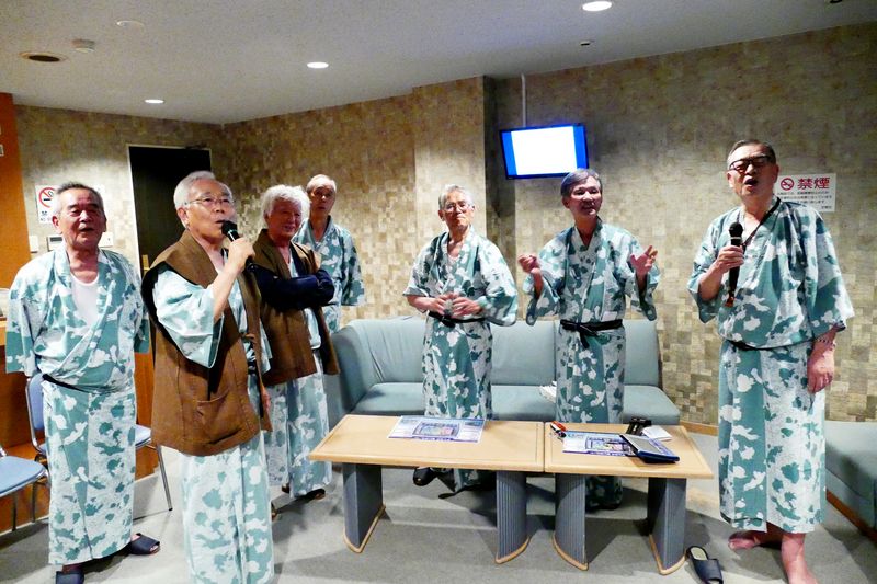 先頭を切ったのは進藤さんで、曲は十八番の「およげたいやきくん」 三八会随一の若々しい美声を響かせた。