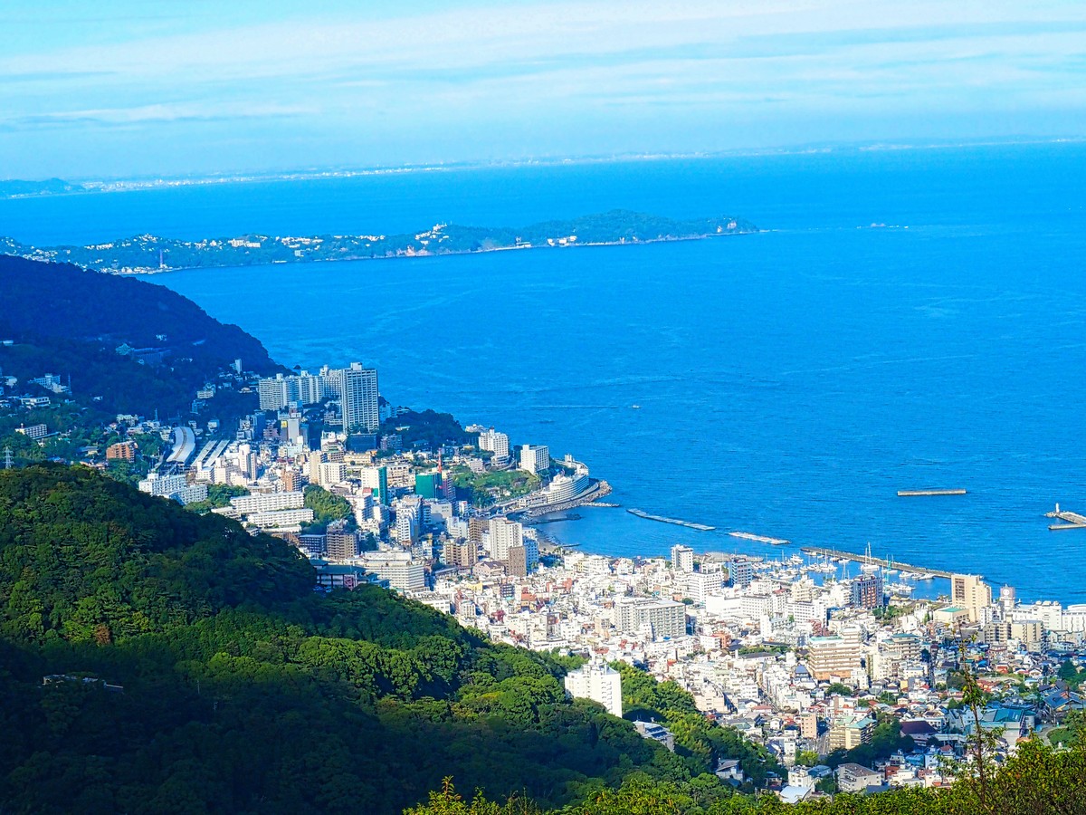 ロビーからの絶景 熱海の市街を眼下に三浦半島から房総半島まで見えた