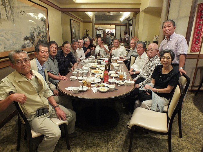 9月27日、今日は打ち上げの日、早々に川西ご夫妻がお見えになりました。 間髪を入れず布施ご夫妻とメキシコで活躍された渡辺ご夫妻が揃ってご入来、その他のお客さんも居て会場は大混雑、説明員も大忙し、自分の所だけで精一杯。 5時近くになり今夜の宴会場「三煕」へ陽之輔を無理やり引き込んで15名、4千円、飲み放題。 1日早い打ち上げ風景 会長が居なくて一寸格が落ちるけどでも楽しくやった。 藤井さんと石塚君のかけとり漫才が面白かった。酔っ払った。