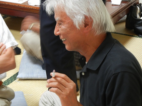早速、阿川さんの発声で“第八寮サマータイムサービス”の生ビールで乾杯をした。この生ジョッキをもう一度お替りし飲み干した途端、一気に「牡丹の間」は盛り上がってしまった。