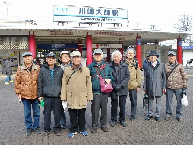 本日は快晴、10時に京急川崎大師駅に集合。参加者は小野山、大川、早川、小野、柏木、杉岡、浪本、深作、石塚の諸氏に小生を加えて10名と久々の2桁の参加人数となった。