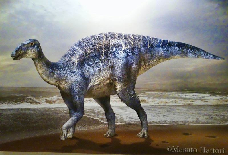「むかわ竜」にスポットライトが当たり、大きな骨格は今にも歩き出しそうでした。