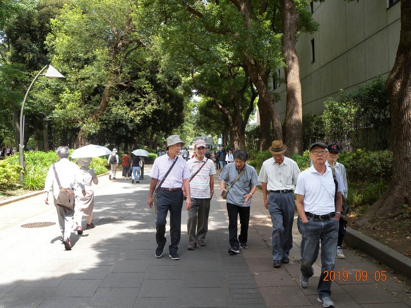上野の森を歩く仲間たち(石塚さん撮影)