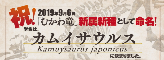 佐藤会長から、9月6日に連絡があり、正式名称(学名)[カムイサウルス・ジャポニクス」が付与されたそうです。