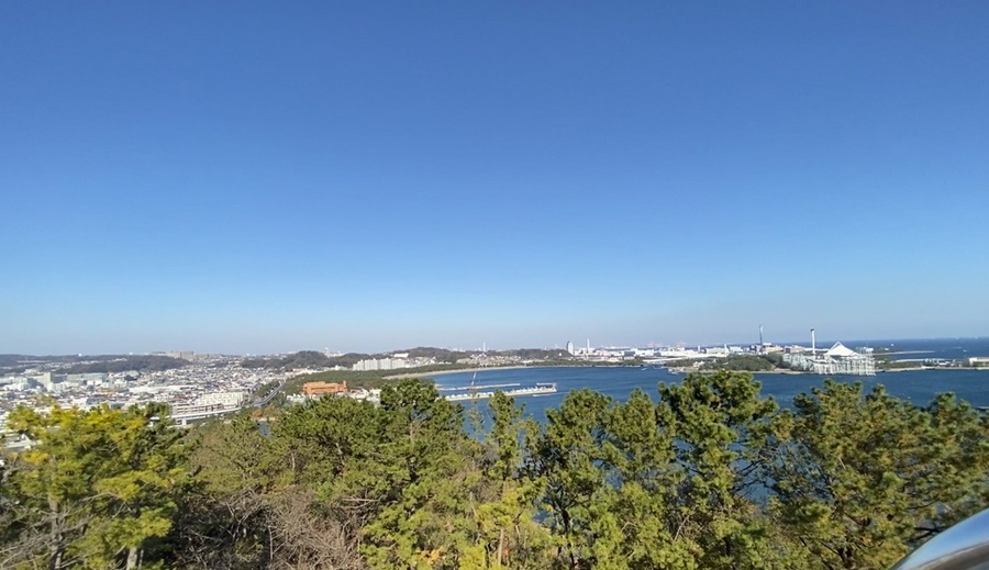日産、三菱重工、そして房総半島など東京湾の360度の大パノラマが広がった。