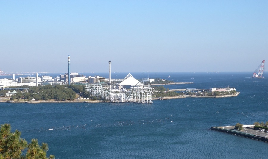 展望台はこの島の山頂にあり、たどり着くまでは結構きつかったが螺旋階段を登りきると手前に八景島シーパラダイス、