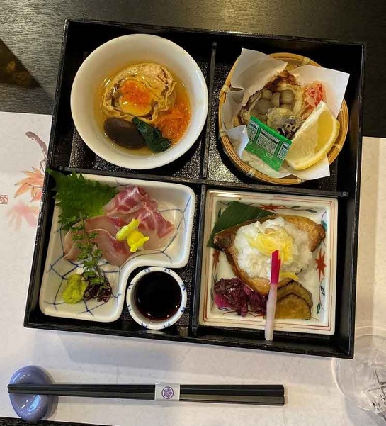 今来た道を引き返し広瀬さんが昼食を予約した「桔梗亭」に到着。