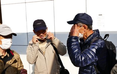 JR茅ヶ崎駅南口に三々五々メンバーが集まってくる。そして話題は「花粉症対策」めいめいがマスクやゴーグル型のメガネなどを見せ合っている。