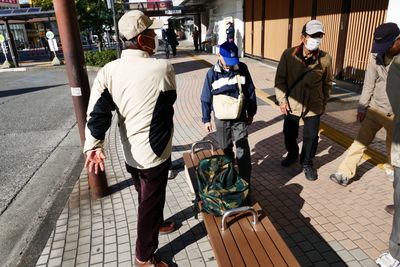 バス停「茅ヶ崎公園野球場前」で、浜見平団地近くの会場まで「歩く組」と「バスに乗る組」とに別れることになった。