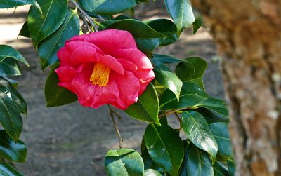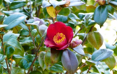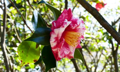 2,800平方メートルの庭園に植えられた椿はいまを盛りと咲いている。
