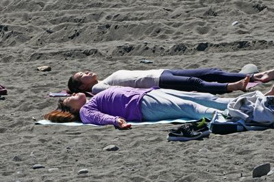 ウイークディのせいか、人気が少なく、砂浜を独占気分で寝転ぶ女性の姿もあった。