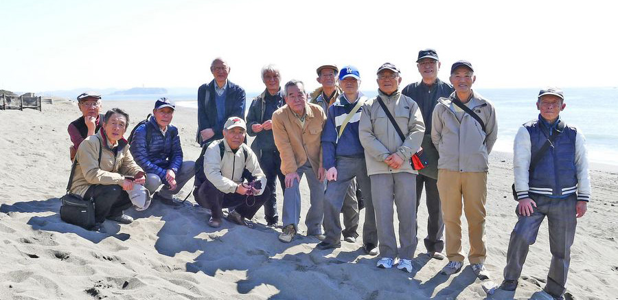 茅ヶ崎海岸の陽光と風と景色を楽しんだ後、石塚幹事より「そろそろ昼食会場へ」の声がかかり、向かうことに。