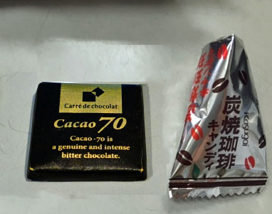 池の側で一休み 差し入れのチョコとキャンディ