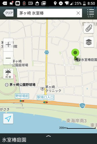 スマホのナビソフト 氷室椿庭園入口(裏口)