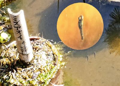 日だまりの池にはもうはやメダカやオタマジャクシが泳ぎ回っている。