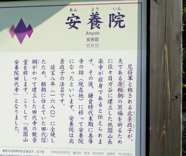 浄土宗の寺。安養院は北条政子の法名である。