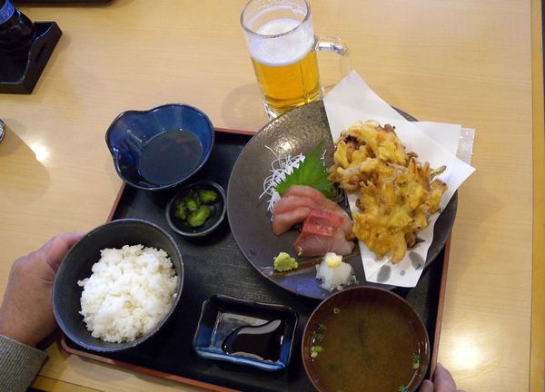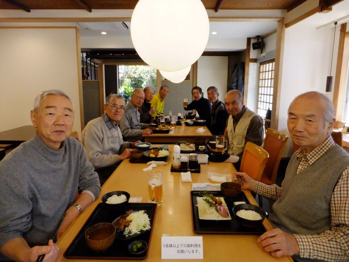 昼食の場は小坪漁港 「めしやっちゃん」で食べた。サーファー仲間がが良く集まる地元の人にも人気の食堂だそうです。逗子マリーナ内には高級レストランがあるが、「めしやっちゃん」は1,000円でボリュウムたっぷりの飯が食えるのが良いところだそうです。 各自が好みのメニューを注文をした。新鮮な魚料理が美味しかった。