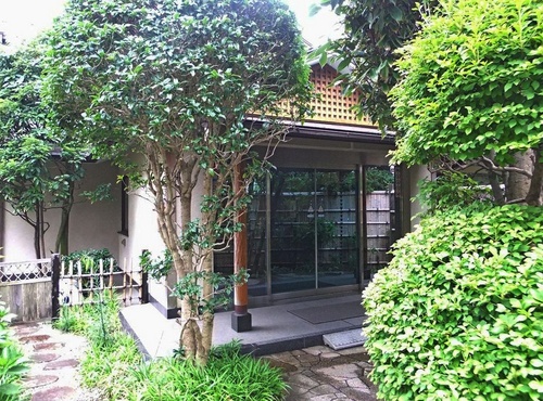 旧川喜多邸別邸(旧和辻邸)をバックに