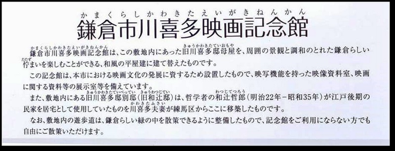 寿福寺へ向かう途中に川喜多映画記念館があった。見学はしなかったが、入り口から敷地に沿って遊歩道があり、