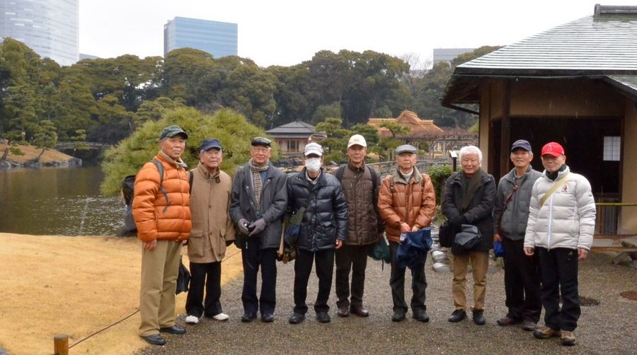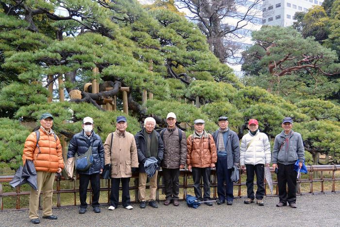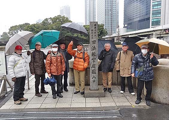 今日(2月22日)の山八会の行程は、潮入りの池と鴨場をもつ江戸時代の代表的な大名庭園、浜離宮恩賜庭園から
