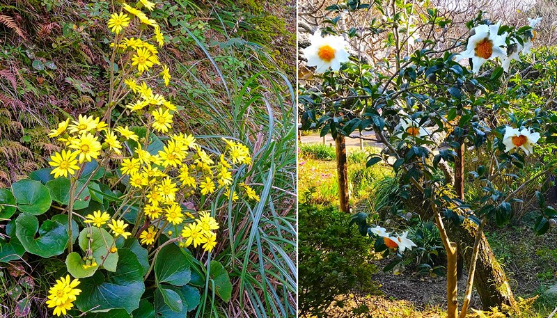 つわぶき* 大きな椿の花**