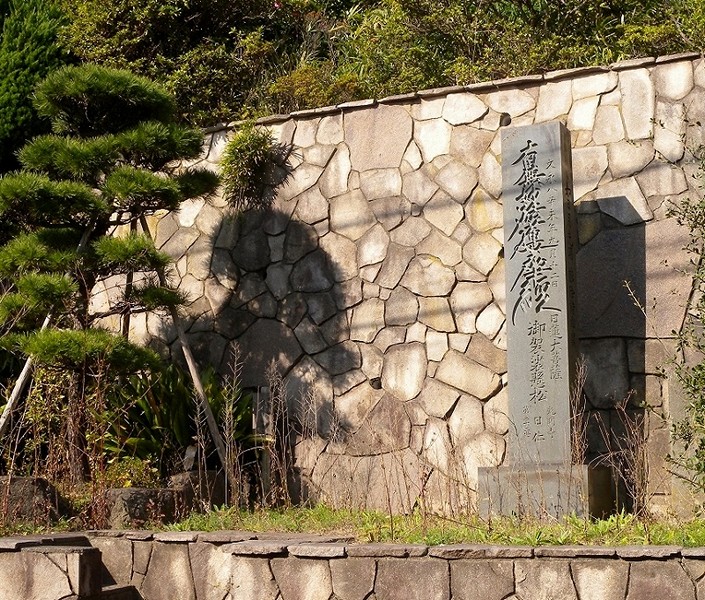 日蓮上人が刑場に曳かれたとき袈裟を掛けたという「日蓮袈裟かけの松」石碑を見て、