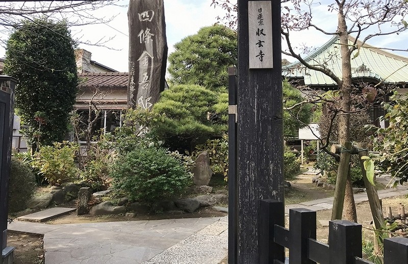 四条金吾邸址の石碑がある收玄寺**