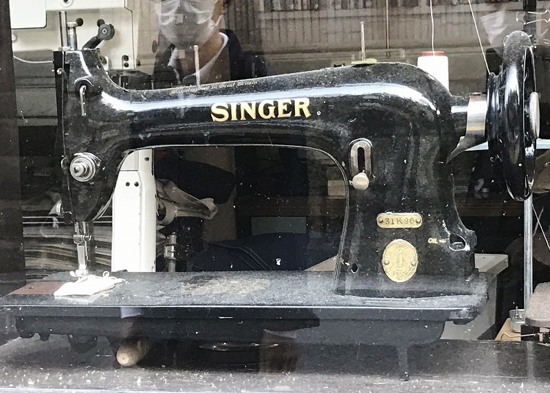 通り道にあった「桜井商店」にはウインドウに古いミシンが何台も飾ってありました。