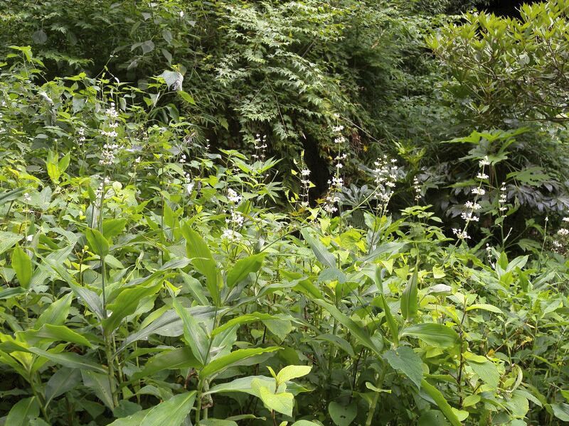 突然、「うぉ〜」と皆の声がした。ハンノキ林に囲まれた半夏生(ハンゲショウ)の群生だ!