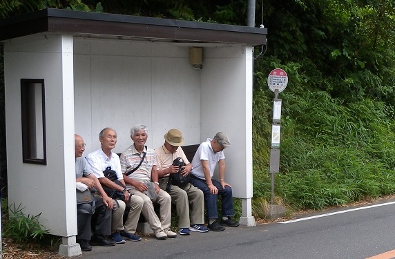 長谷方面行のバスは11:55だ。20分もある。皆疲れ果て反対側にあるバス停のベンチに座った。まるで「巣立ちを待つツバメの子」に見え、可愛かった。
