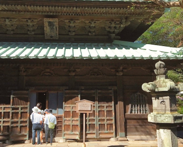 本日の山八会、、石塚リーダの心は「英勝寺には重要文化財が5件もある、その制覇を」にあることは、出発時からの彼のもろもろ発言から、一同了解済み。すでに「仏殿」、「唐門」、 「祠堂」、「山門」と4件の重要文化財は踏破。残るは「鐘楼」1件のみ。