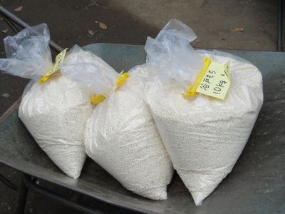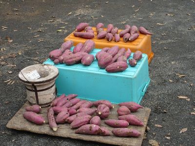 焼芋の準備 収穫された餅つき用もち米