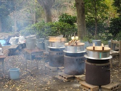 竈準備 鍋準備に忙しいおばさん達